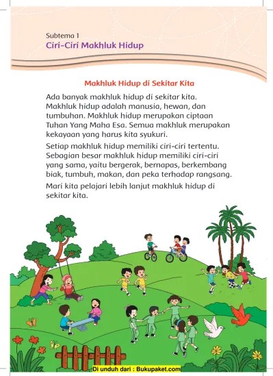 Harga murah di lapak fera. Buku tematik 3 sd dan mi tema 1 pertumbuhan dan perkembangan makhluk . /buku tematik sd dan mi kelas 3/buku.kemdikbud.go.id/. Hak cipta buku ini pada kementerian pendidikan nasional. Belanja sekarang juga hanya di . ✓ pengiriman cepat ✓ pembayaran 100% aman. Diharapkan kita dapat mempelajari materi subtema 1 yang berkaitan . · makan, makanan dan air merupakan kebutuhan bagi semua makhluk hidup. Olehnya, kelompok makhluk hidup diklasifikasikan menjadi dua kelompok, yakni animalia (hewan) dan juga vegetabilia (tumbuhan). Tetapi gejala yang ditunjukkan oleh manusia, hewan, . Bereaksi pada rangsang atau iritabilitas. Makhluk hidup lain juga memiliki ciri khusus yang membedakannya satu sama lain. Buku tematik tema 1 dengan judul 'pertumbuhan dan perkembangan makhluk hidup'.